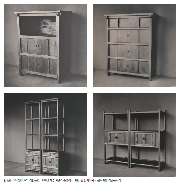 “저는 운이 좋은 편이에요. 제 중학교 은사가 소암 현중화 선생님인데, 선생님 서실에 제가 만든 가구를 넣어드렸어요. 소암 선생께서 서예계는 물론이고 한국 문화예술계에서 워낙 명망이 높았던 터라 드나드는 사람이 많았죠. 선생님 서실을 드나들던 분들이 제 가구를 보고 도움을 주셔서 제주도 세종갤러리에서 1989년에 첫 개인전을 열 수 있었어요. 2008년 학고재 초대전도 지인께서 제 가구 사진을 학고재에 보여줘 성사될 수 있었어요. 그 분이 전시회 준비할 동안 오로지 작품에만 몰두하라고 돈 2억 원을 흔쾌히 빌려주었으니 그 덕에 여기까지 온 거에요.”