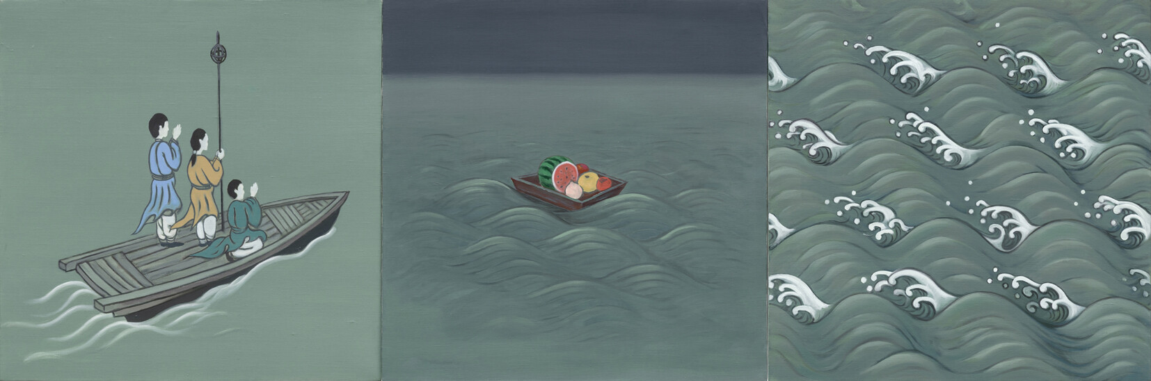 | ▲ 박찬경 〈고란사〉 2024, Oil on canvas, 70 x 70 cm (3 panels), Courtesy of the artist and Kukje Gallery, 사진: 안천호, 이미지 제공: 국제갤러리 |