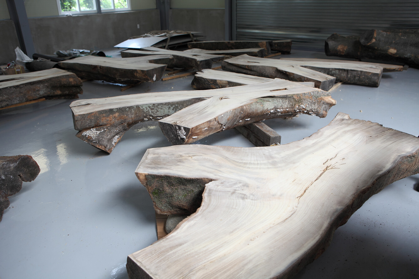 작가는 350여 년 된 포구나무를 어떤 변형이나 제재 없이 반으로만 딱 잘라 테이블을 만들었다. 350년이라는 세월의 힘도 따라왔다. 표피를 떼어내지도, 이끼를 제거하지도 않았다. 일반적인 가구에서는 전혀 볼 수 없는 것들이 이용기 작가의 테이블에는 존재했다. 그는 나무가 주는 모든 것을 버리지 않고 작품의 일부분으로 가져왔다. 비단 보이는 부분만이 아니다. 눈에 볼 수 없는 나무의 향 또한 전시실에 맴돌았다.