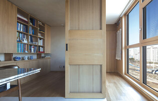 집 한쪽을 바위 위에 걸치는 형태로 설계가 되면서 내부에 생기는 경사는 계단식으로 처리했다. 계단은 책꽂이가 되기도 하고 벤치가 되기도 하고 맨 위층에 침대시트를 놓으면 침대가 된다. 외관은 단단한 낙엽송을 태운 목재를 사용했다. 검게 탄 나무 덕분에 집은 눈에 잘 띄지 않게 됐고 은신처로서의 성격이 더욱 강해졌다. 나무 작업은 지역 목수의 도움을 받았다. 내부 바닥은 집을 지을 땅에 쓰러져 있던 나무들로 만들었다. 죽어 있던 나무가 같은 장소에서 새로운 의미로 거듭났다.