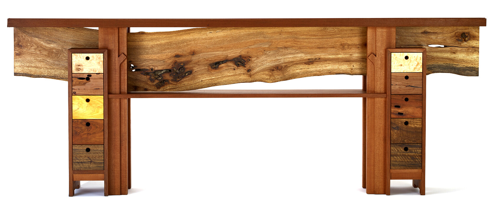 나무의 벌레구멍, 갈라진 상처까지 작품의 한 부분이 되는 전시 작품들은 전통의 맥락과 모더니즘 형식을 고스란히 전하고 있다. 조선 가구의 전통적 기법과 효율을 바탕으로 간결하면서도 압축적인 디자인이 조화를 이루면서 작가의 경험과 시선이 곧은결처럼 잘 뻗어 있다.