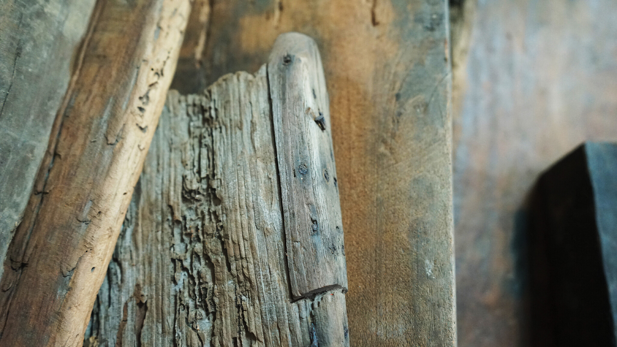 “제주도 전통 살레에 마음을 빼앗긴 또 다른 이유는 사오기의 매력 때문이에요. 사오기는 제주도의 척박한 화산회토에서 자라면서 성장이 더뎌 눈매가 촘촘하고 예뻐요. 육지에서 자라는 산벗나무와 목질이나 색깔에서 차이가 많죠. 거기에 세월이 덧씌워지면 제주 사오기는 짙은 흑갈색으로 가라앉는데, 그 색감에서 오는 특유의 질감이 사오기 고재의 진정한 매력이죠. 육지에서 자란 산벗나무는 오래 묵어도 제주도 사오기와 같은 색이 안 나요.”