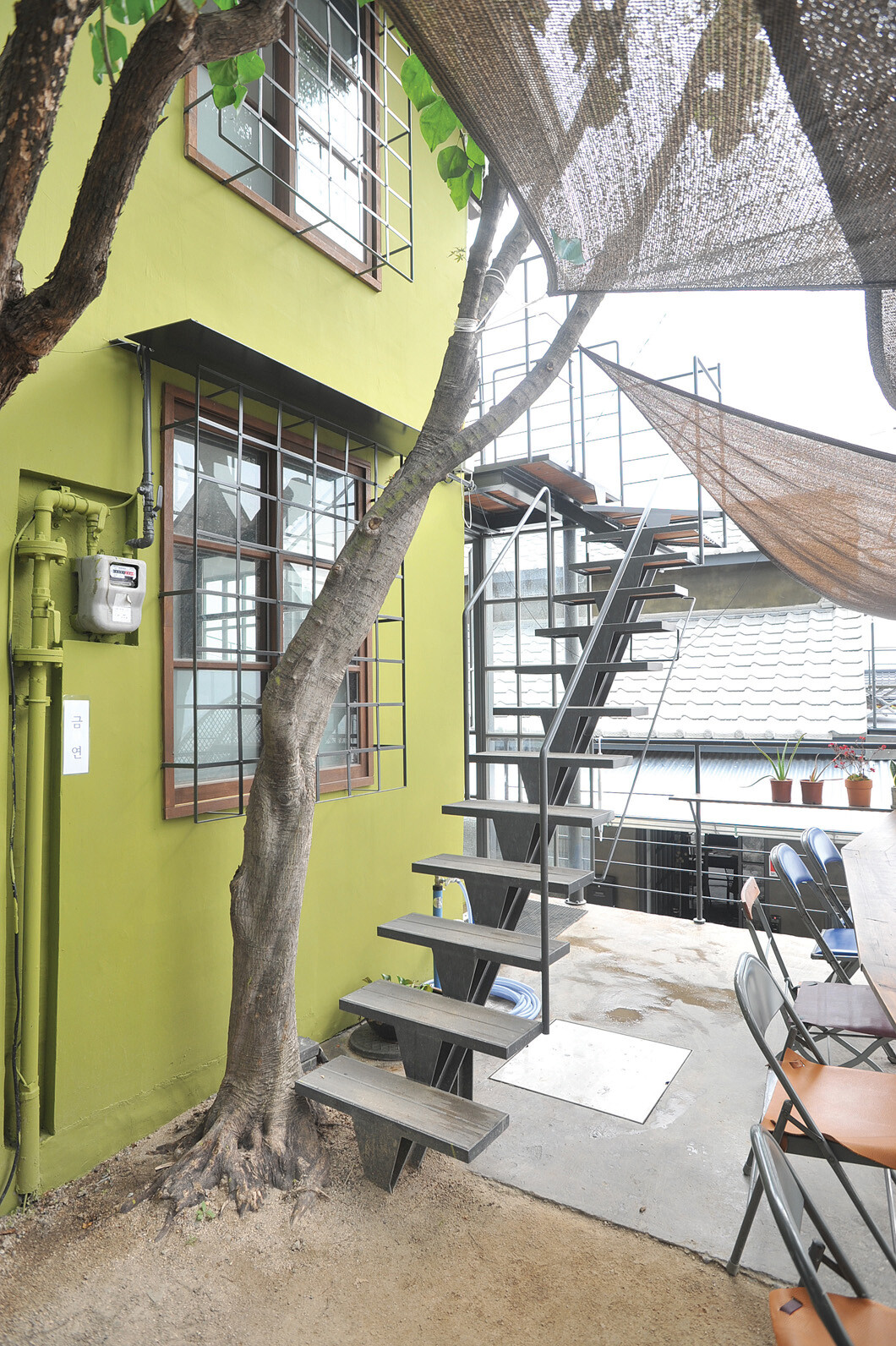 개뿔 건물은 쇳대박물관 최홍규 관장이 경기대 안창모 교수의 고증에 근거해 왜곡된 수리 부분을 원 위치로 복원한 집이다. 최초의 콘크리트 타운하우스라 해도 세월의 좀은 피할 수 없고 생활양식에 쫓긴 건축은 변형과 변질을 따르게 된다. 이 집에도 누군가가 살았고 세월을 보탰을 거다. 매일 30~40도의 경사진 언덕길을 오르내린 집 주인은 풍경에 취하기 전에 근육통으로 밤을 설쳤고, 아침이면 다시 올 생각으로 무거운 발걸음을 옮겼을지 모른다.