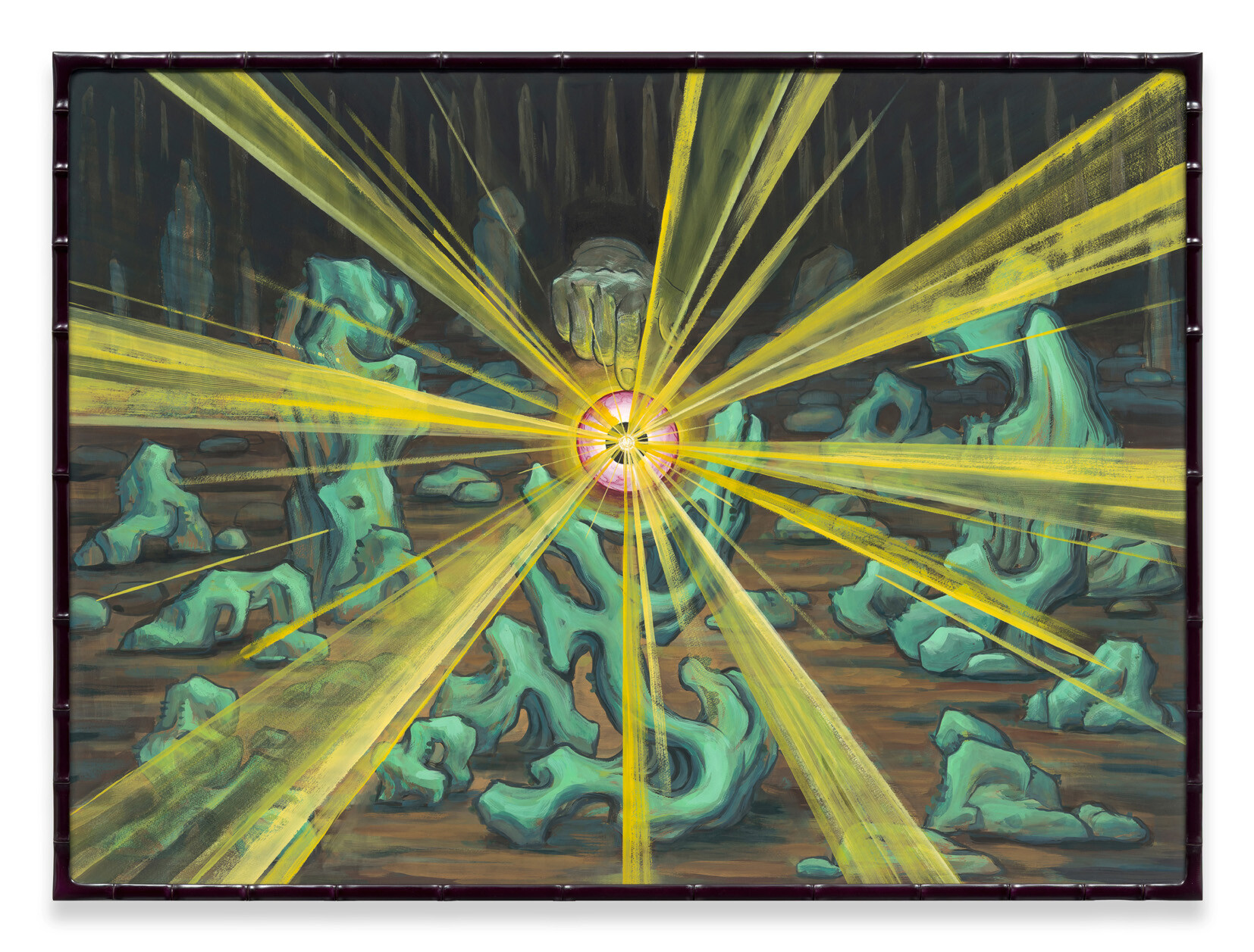 한편 〈족자〉 연작은 캔버스와 족자 사이의 언어 게임으로, 동서양의 문화적 경계에서 연행하는 외줄타기와도 같다. 〈괴석 1〉(2025), 〈괴석들〉(2025)과 〈프로젝션〉 연작은 기암괴석 그림에 배어 있는 현학(玄學, 노장사상에서 말하는 우주의 오묘한 이치)에 대해 묻는 일종의 ‘그림 퀴즈’로, 작가는 옛 괴석도가 이미 ‘인류 없는 우주’를 상상했다는 점에서 인간 중심의 사유에서 벗어나고자 했다.