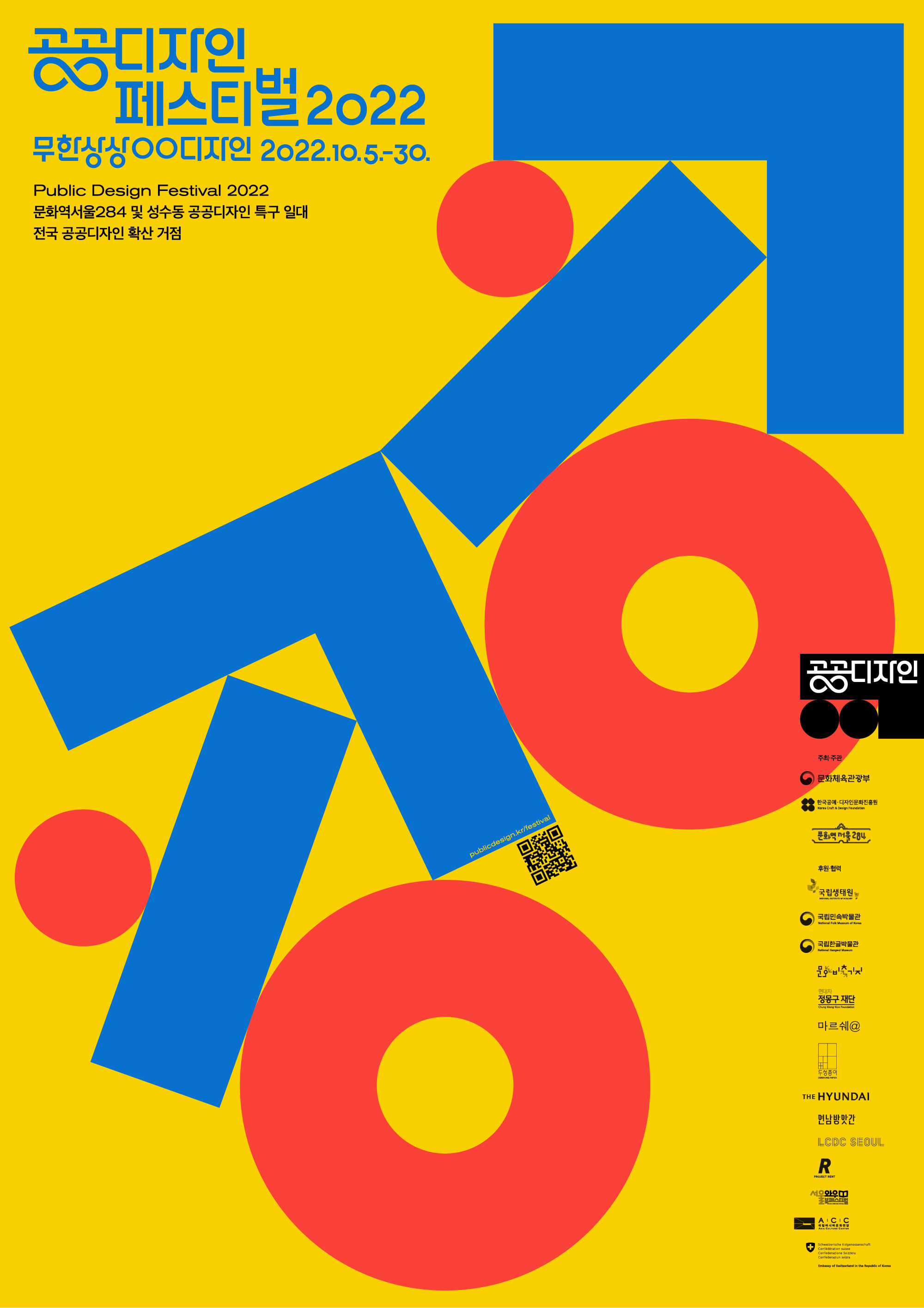 문화체육관광부(장관 박보균, 이하 문체부)는 한국공예·디자인문화진흥원(원장 김태훈, 이하 공진원)과 함께 10월 5일(수)부터 30일(일)까지 문화역서울284와 성수동 문화공간 등 전국 70여 곳에서 ‘무한상상, ○○디자인’이라는 주제로 첫 번째 ‘공공디자인 페스티벌’을 개최한다.