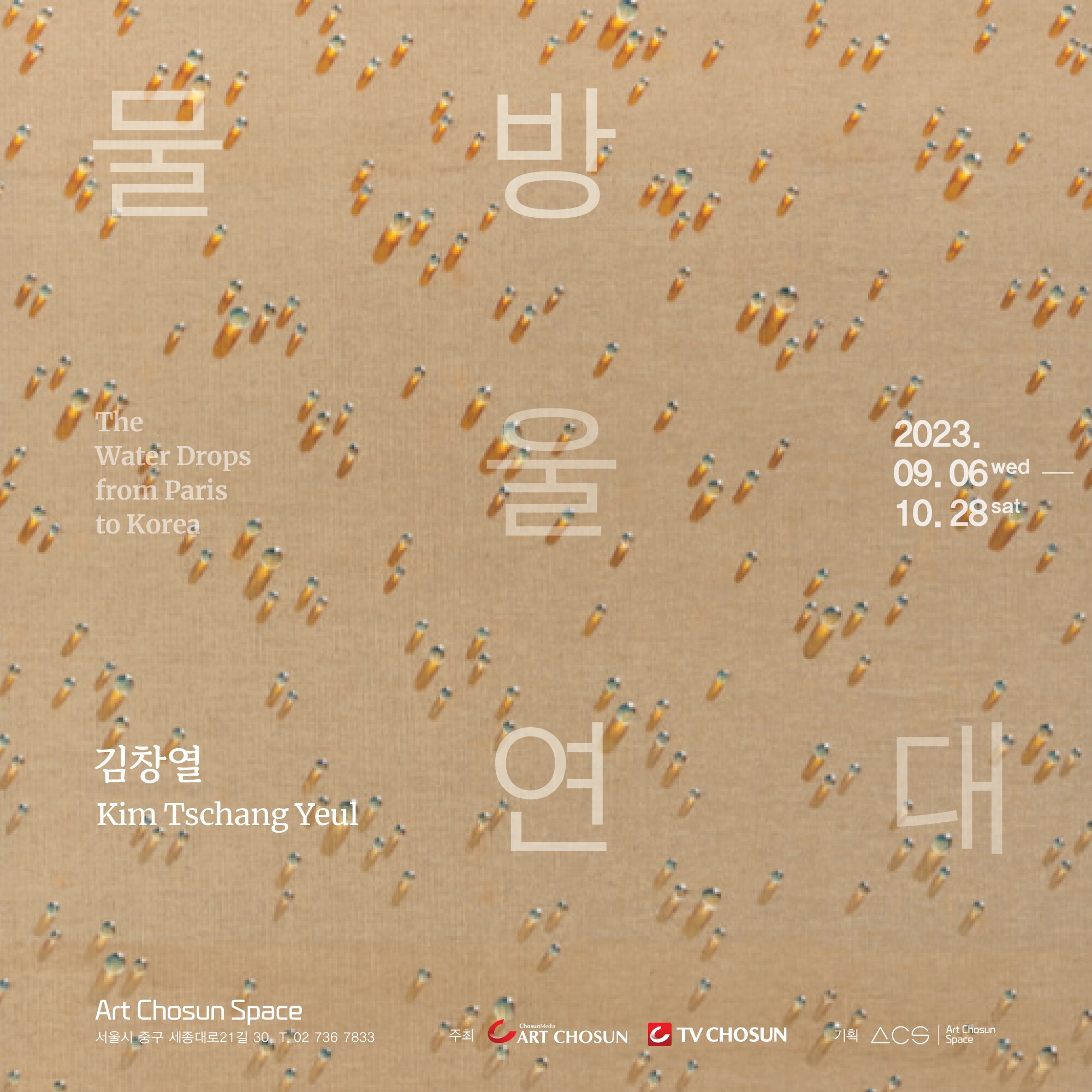 김창열(1929-2021) 화백의 《물방울 연대 : The Water Drops from Paris to Korea》가 2023년 9월 6일부터 10월 28일까지 광화문 아트조선스페이스에서 개최된다.