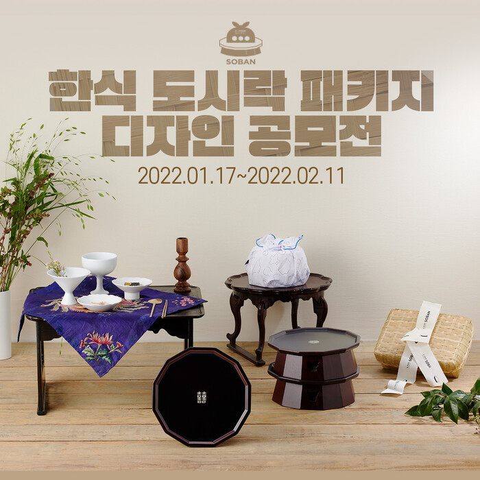 이번 공모전은 2021년 프랑스 파리에서 성공적으로 마무리된 한식도시락 캠페인 <소반>의 뒤를 이을 디자인을 발굴하기 위해 마련했다. 소반, 찬합, 초배기, 보자기 등 전통문화 요소를 가미해 제작된 기존 한식도시락처럼 한식문화 본연의 가치를 알릴 새로운 패키지 디자인을 제안 받는다.