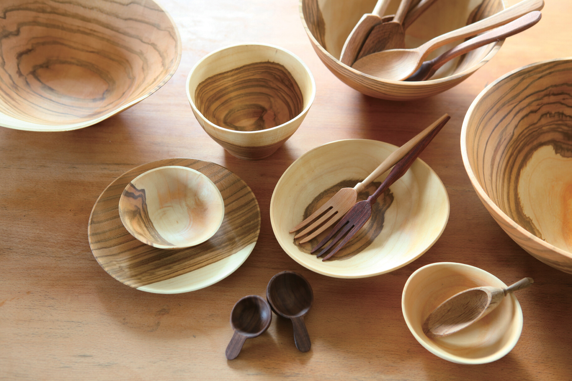 평소 음식이나 물건을 담고, 얹고, 넣는 그릇들. 도자기, 금속, 유리, 플라스틱까지 소재는 가지각색이다. 그중에서도 나무는 다른 소재에서는 찾아볼 수 없는 독특한 존재감과 매력이 있다. 손에 잡았을 때의 느낌이 정말 좋다. 뜨거운 국물을 담아도 그릇을 잡고 있는 손에는 열기가 전해지지 않는다. 입에 닿는 촉감도 좋다. 끌 자국이 남아 있는 나무 그릇의 분위기가 편안함을 준다. 그리고 무엇보다 나무의 정갈함이 음식에 배고, 은은한 정취가 음식과 잘 어우러져 어떤 요리든 담을 수 있다.