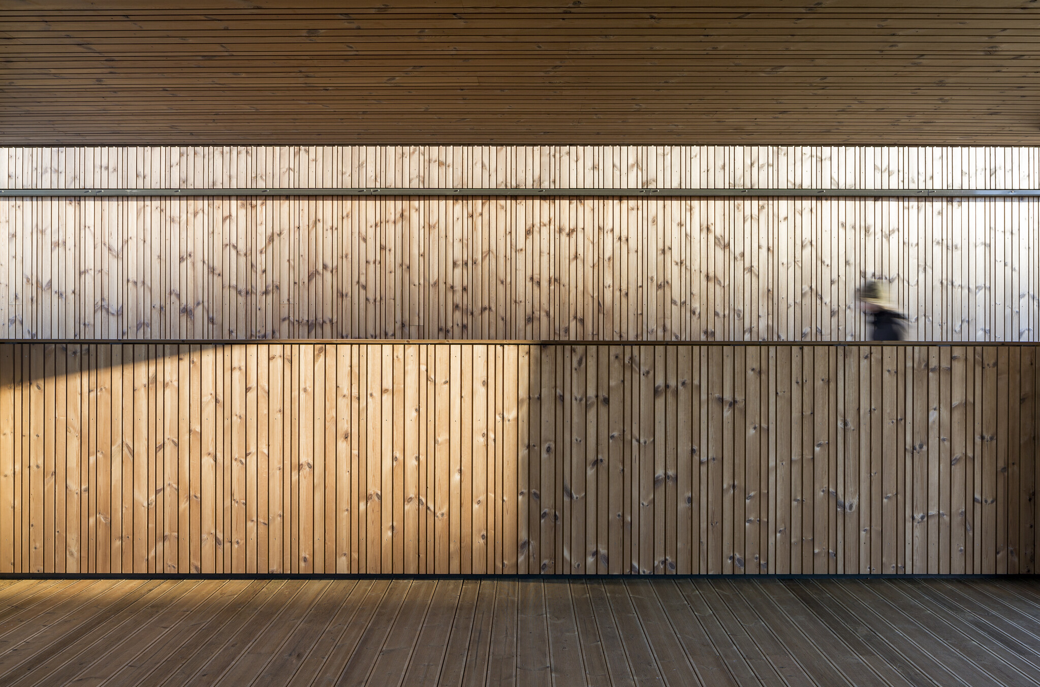 야외 구역은 산책로와 중앙 광장으로 나뉘어 있다. 산책로는 건물을 둘러싸고 있으며 바다와 도시 중심부로 향하며 도심의 역사적인 목조 주택과 현대 목조건축인 워터프론트를 연결한다. 또한 길은 여러 카페와 숍으로도 이어지면서, 휴양지의 분위기를 더한다. 단지 내의 여유로움과 도시의 활발함이 산책로로 이어지며, 도시와 생활의 자연스러운 흐름을 만들어낸다.