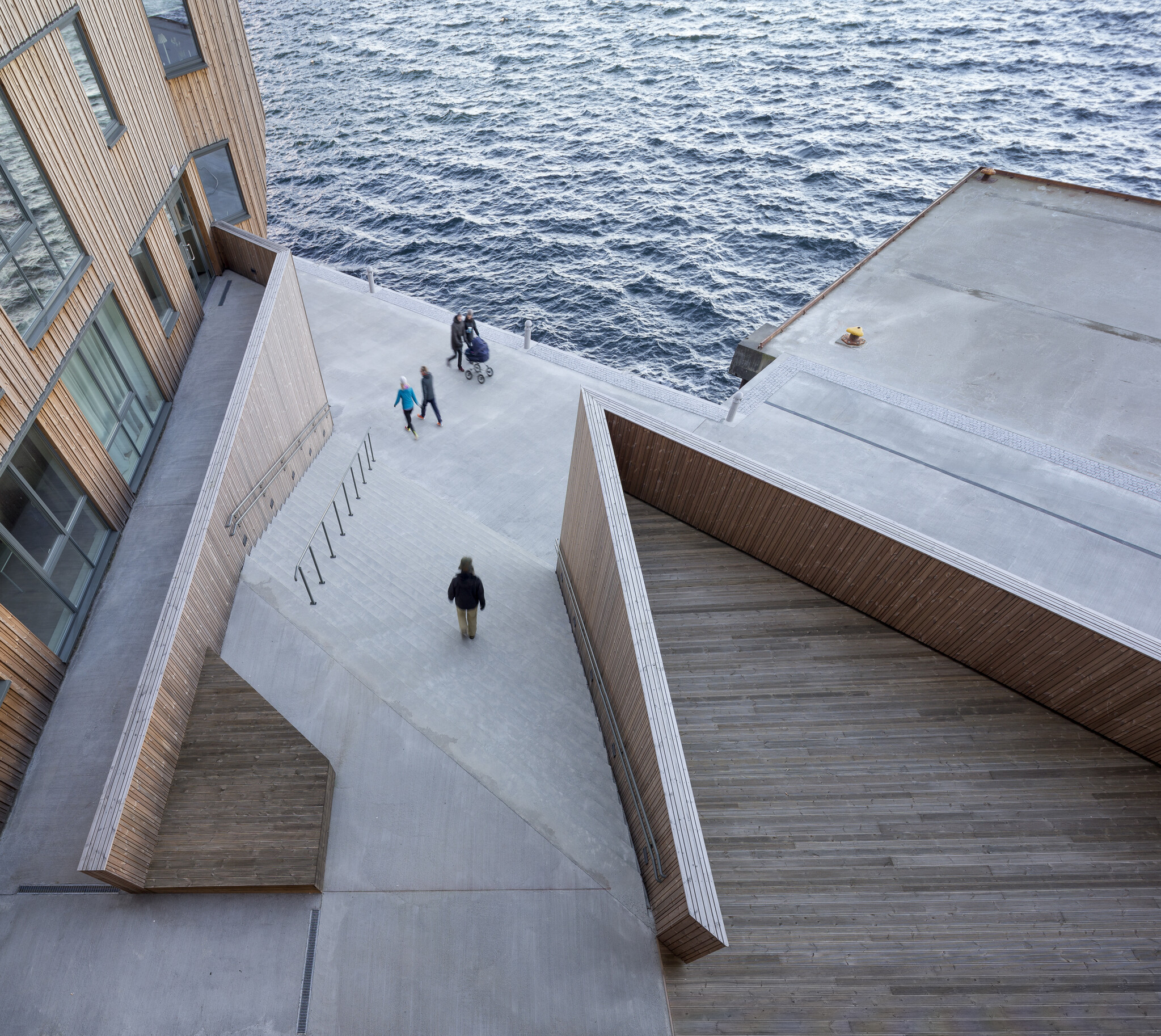 공동 광장과 산책로로 이어지는 계단과 나무 테라스는 워터프론트의 휴양적인 분위기를 더욱 강조한다. 연결 통로 사이에서, 계단과 나무 테라스는 주민들끼리 가볍게 스치는 곳으로, 사회적 만남과 소통의 역할을 한다. 또한 계단과 나무 테라스는 바다를 향하여 만들어져 있어 거주자들은 언제든 쉽게 풍경을 감상할 수 있다.