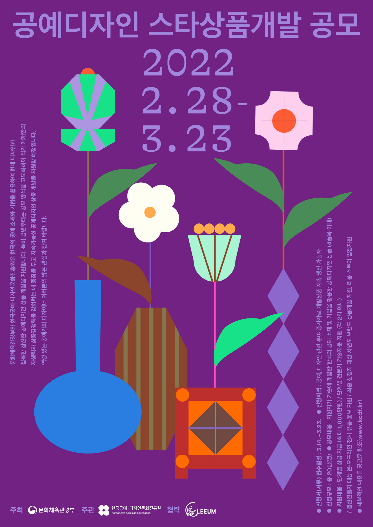 한국공예·디자인문화진흥원(이하 공진원)은 <2022 공예디자인 스타상품개발 공모> 신청을 14일부터 접수한다고 밝혔다.